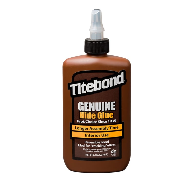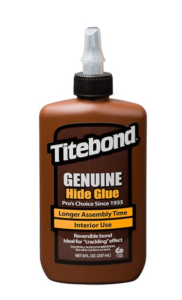 Titebond Genuine Hide Glue es el primer pegamento de origen animal que se ofrece en forma líquida y lista para usar. No requiere mezclar, calentar ni revolver. Los carpinteros profesionales utilizan el pegamento Titebond Genuine por su largo tiempo de montaje, su resistencia excepcional y su efecto crujiente único en la madera. Titebond Genuine proporciona una resistencia superior a la deformacion, ofrece una excelente capacidad de lijado y no se ve afectado por los acabados. Su sensibilidad a la humedad permite un fácil desmontaje de las piezas, un beneficio fundamental en la restauración antigua o la reparación de instrumentos musicales.
